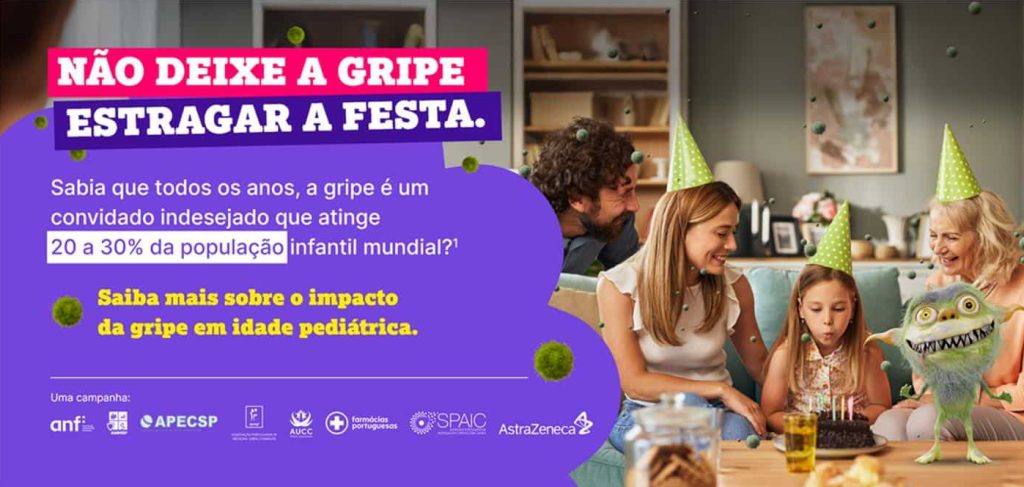 Com o objetivo de alertar e sensibilizar para a doença e reforçar a literacia de pais, educadores e cuidadores, surge a campanha ‘Não deixe a gripe estragar a festa’. A personagem Viroco, ‘o especialista em estragar a festa’, é a mascote desta edição e protagoniza os materiais da campanha, convidando pais e crianças a testarem os seus conhecimentos sobre gripe pediátrica e a adotarem medidas simples para evitar a propagação do vírus de forma lúdica e educativa.
