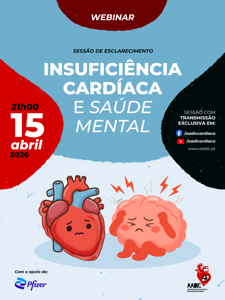 A AADIC – Associação de Apoio aos Doentes com Insuficiência Cardíaca realiza, no próximo dia 15 de abril, a partir das 21h, o webinar “Insuficiência Cardíaca e Saúde Mental”, uma iniciativa que visa sensibilizar para a importância da abordagem integrada entre saúde física e psicológica nestes doentes.