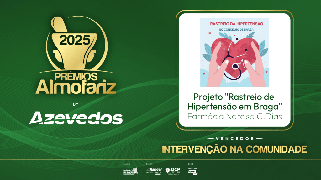 O Prémio Almofariz Intervenção na Comunidade 2025 By Laboratórios Azevedos foi entregue ao Projeto ‘Rastreio de Hipertensão em Braga’, da Farmácia Narcisa C.Dias.