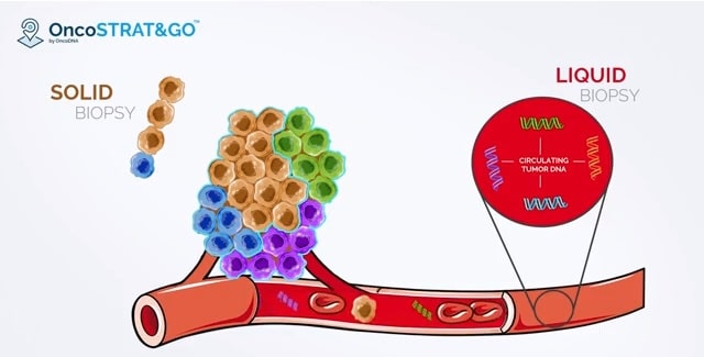 Este perfil molecular, que a empresa belga com escritórios em Valência utiliza há varios anos, vem a melhorar ao longo do tempo. Hoje, a OncoSTRAT&GO tornou-se a única solução teranóstica no mercado que combina a análise de biópsia sólida e líquida de tumores sólidos no estadio IV. O OncoSTRAT&GO tem uma abordagem integrada: utiliza um painel de 313 genes de biópsia sólida, uma análise de proteína tumoral (IHQ) e uma análise de biópsia líquida ou sanguínea.