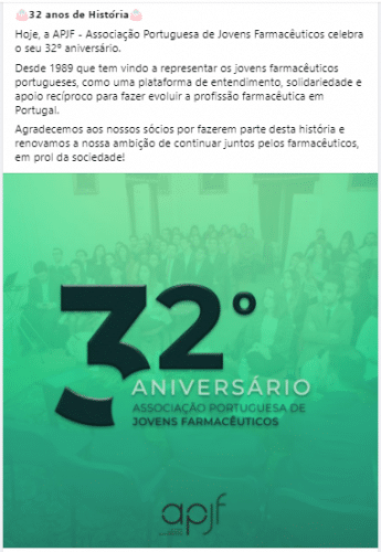 A Associação Portuguesa de Jovens Farmacêuticos (APJF) celebrou esta quinta-feira, o seu 32º aniversário.