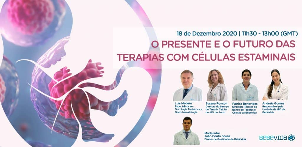 O webinar irá centrar-se na análise das fontes de células estaminais e vantagens da sua utilização, na aplicação terapêutica das células do sangue e do tecido do cordão umbilical em diversas doenças e, no panorama atual da pandemia por COVID-19, o potencial das células estaminais no combate ao coronavírus. Além do Dr. Luís Madero vai contar também com a participação da Dr.ª Susana Roncón – Diretora do Serviço de Terapia Celular do IPO do Porto, da Dr.ª Patrícia Benevides – Diretora Técnica do Banco de Tecidos e Células da Bebé Vida e da Dr.ª Andreia Gomes – responsável pela Unidade de I&D da Bebé Vida, com a moderação do Dr. João Sousa – diretor de Qualidade da Bebé Vida e Presidente da Associação Portuguesa de Empresas de Criopreservação (APEC).