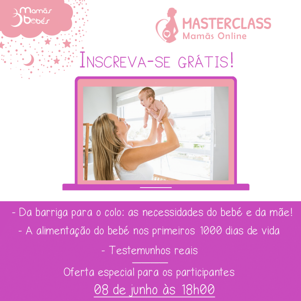 A inscrição é feita através deste link – https://eventos.mamasebebes.pt/masterclass-mamas-online-8-junho/?utm_source=imprensa&utm_medium=imprensa&utm_campaign=MasterClass-08junho-2021