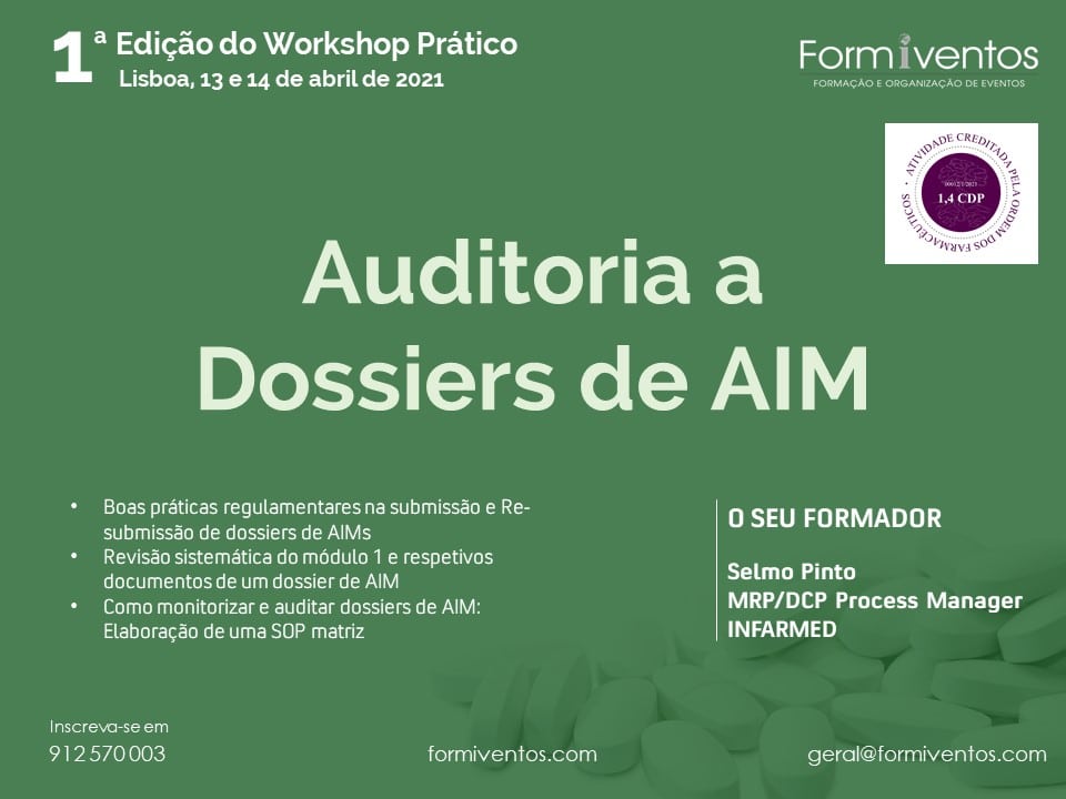 A formação será conduzida pelo reputado especialista Dr Selmo Pinto, MRP/DCP Process Manager , do INFARMED.