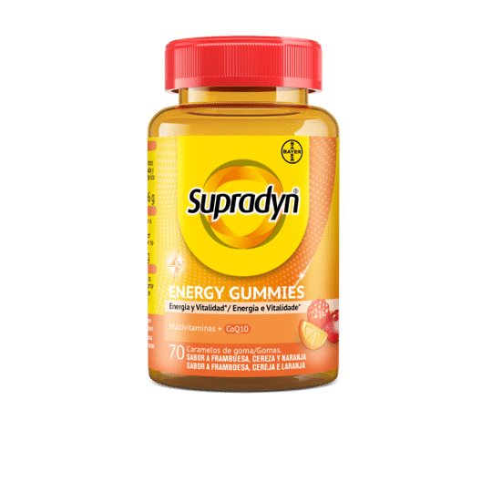 Supradyn® Energy Gummies foi desenvolvido para adultos e jovens a partir dos 12 anos que procuram uma solução prática para o cansaço e a fadiga do dia a dia. Com um agradável sabor a framboesa, cereja e laranja, este suplemento alimentar combina um conjunto de vitaminas e a Coenzima Q10, sendo isento de lactose e glúten.
