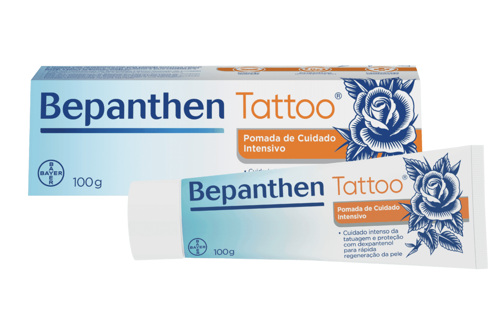 Uma correta hidratação é o segredo para manter uma pele bonita e saudável e com as tatuagens não é diferente. O cuidado posterior à realização de uma tatuagem é a chave para que esta permaneça sempre protegida e com cores vivas durante anos. Bepanthen Tattoo® Pomada de Cuidado Intensivo oferece um cuidado intenso da pele tatuada com dexpantenol (provitamina B5) para uma rápida regeneração da pele.