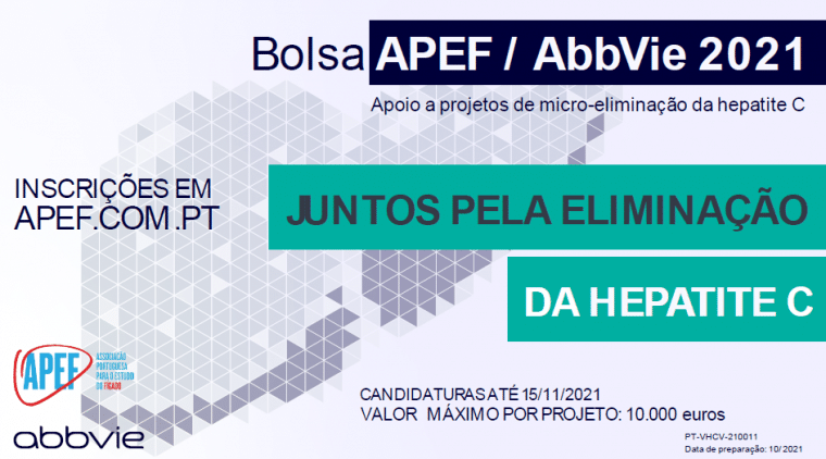 Lisboa, xx de abril de 2022 – “Juntos pela eliminação da Hepatite C” é o nome da bolsa de apoio promovida pela APEF/Abbvie, que se destina a apoiar intervenções no âmbito do tratamento e eliminação de Hepatite C, bem como a geração e apresentação de dados epidemiológicos ou clínicos, por parte dos profissionais de saúde e investigadores nacionais.