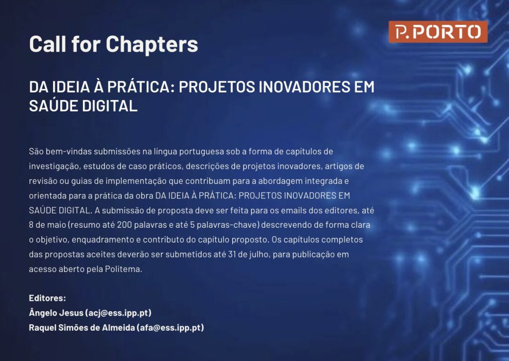 Estão abertas as submissões (em Português) para o livro que pretende reunir o que de melhor se faz na interseção entre tecnologia e saúde! Se desenvolveu projetos inovadores, estudos de caso ou revisões sobre saúde/farmácia digital, esta é a oportunidade de publicar o seu trabalho em acesso aberto pela Politema.