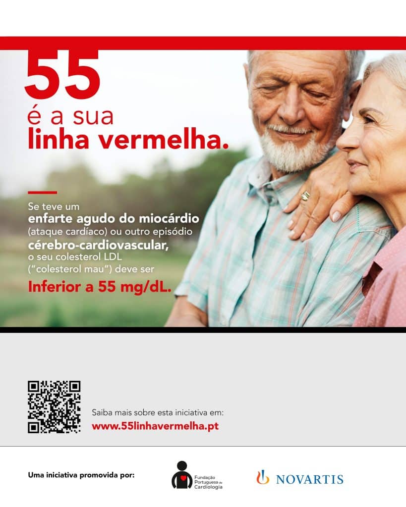 A Fundação Portuguesa de Cardiologia (FPC), em parceria com a Novartis, acaba de lançar a campanha nacional de consciencialização com o mote “55 é a sua linha vermelha”. O objetivo é capacitar os portugueses para conhecerem o seu risco cardiovascular, sublinhando a importância do controlo rigoroso do colesterol LDL, vulgarmente conhecido como “colesterol mau”, especialmente em pessoas que já sofreram um ataque cardíaco.