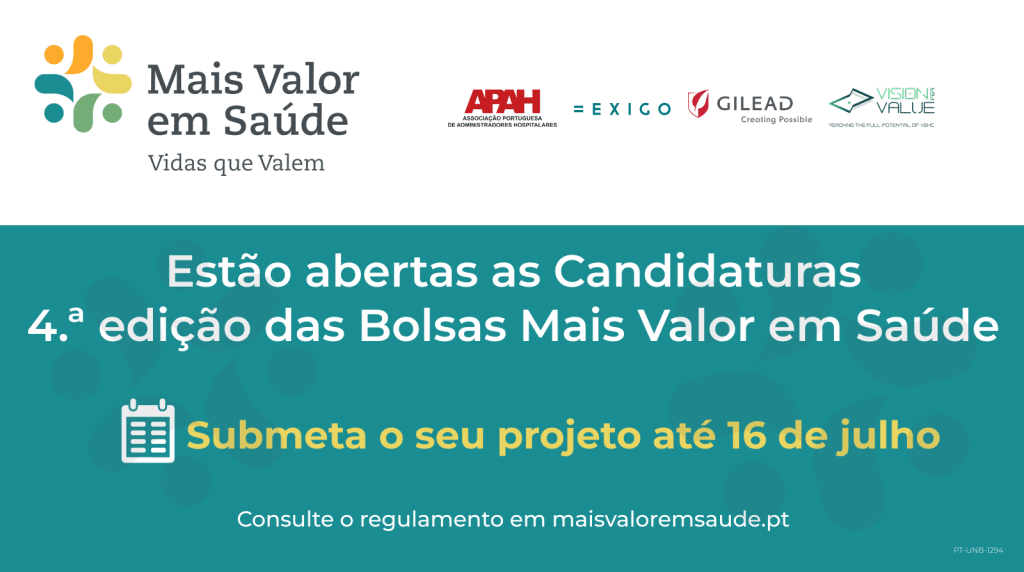 Promovido pela Gilead Sciences, pela Associação Portuguesa de Administradores Hospitalares (APAH), pela EXIGO e pela Vision for Value – com o apoio tecnológico da MEO Empresas –, o Programa Mais Valor em Saúde pretende distinguir e apoiar projetos inovadores que visem a implementação de modelos de VBHC em instituições do Serviço Nacional de Saúde (SNS).