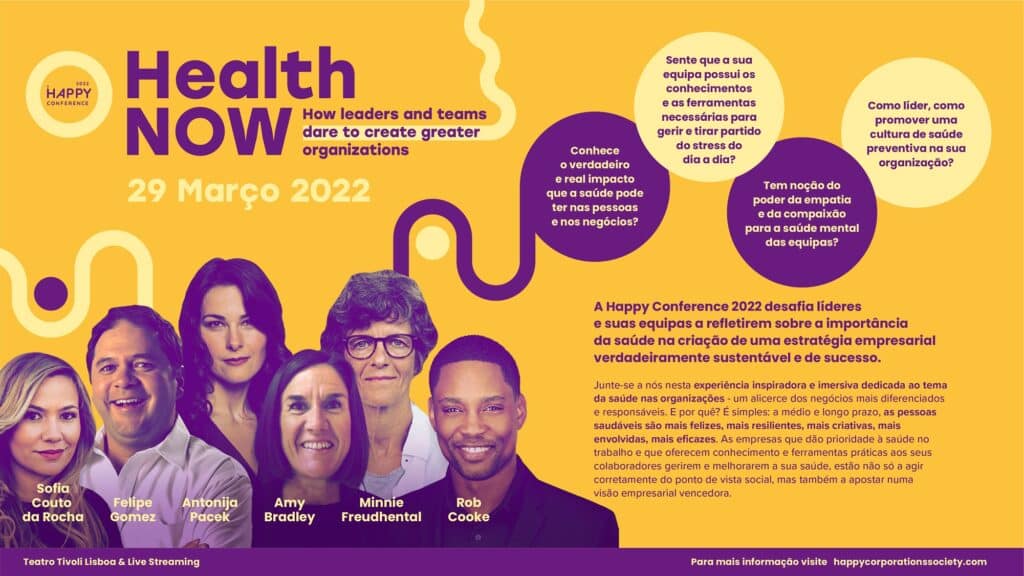No dia 29 de março, o Teatro Tivoli BBVA, em Lisboa, vai ser palco da Happy Conference, uma das maiores conferências na área de liderança e desenvolvimento humano e que, este ano, destaca o tema da saúde – física, mental e relacional – como prioridade num contexto pós-covid.