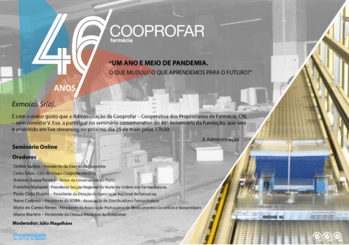 No dia 25 de maio, pelas 17:30, a Cooprofar organiza o Seminário Online “Um ano e meio de Pandemia. O que mudou? O que aprendemos para o Futuro?”.