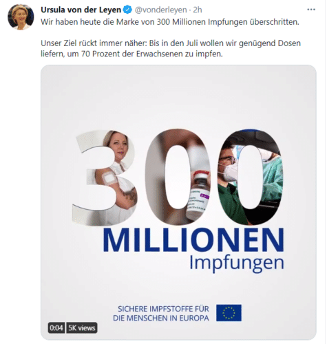 A União Europeia (UE) ultrapassou as 300 milhões de doses de vacinas da covid-19 administradas.