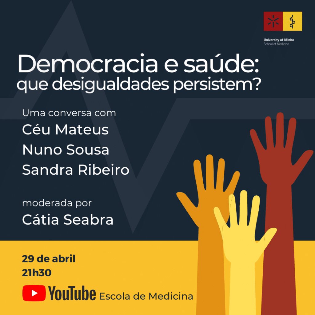 Novamente em formato webinar, a discussão terá lugar no próximo dia 29 de abril, às 21h30, e contará com as contribuições de Céu Mateus (Economista da Saúde e Professora na Universidade de Lancaster, no Reino Unido), Nuno Sousa (Médico e Professor Catedrático na Escola de Medicina da UMinho) e Sandra Ribeiro (Presidente da Comissão para a Cidadania e a Igualdade de Género). A conversa será moderada pela estudante de Medicina Cátia Seabra.