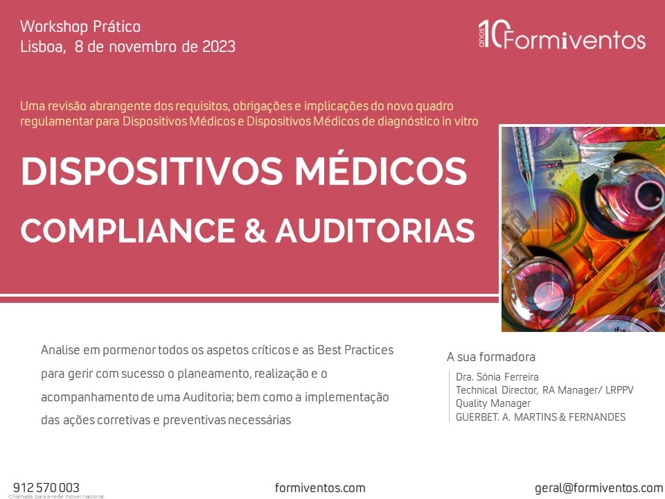 A Formiventos, sempre na vanguarda da Formação, preparou uma ação exclusiva para as entidades que se dedicam ao fabrico e distribuição por grosso de Dispositivos Médicos com o objetivo de habilitar os profissionais envolvidos no sistema da qualidade, no sistema de controlo de qualidade e aos profissionais que atuam em auditorias, com os conhecimentos necessários para planificar e conduzir as auditorias, criar os relatórios e comunicá-los de forma eficaz aos gestores das áreas auditadas; assim como verificar que são implementadas as ações corretivas/preventivas necessárias