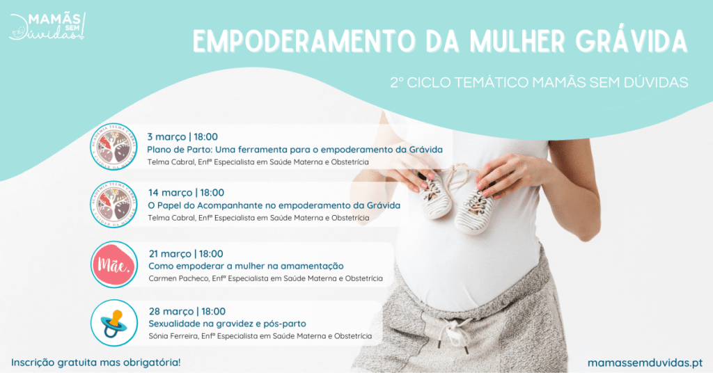 A última das quatro aulas do ciclo temático promovido pela Mamãs Sem Dúvidas realiza-se no dia 28 de março, com a participação da Enfermeira Sónia Ferreira, especialista em saúde materna e obstetrícia, para abordar a sexualidade na gravidez e no pós-parto.