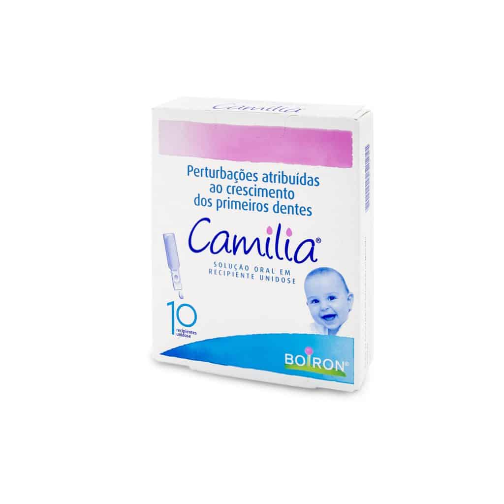 As unidoses Camilia são pré-doseadas e contêm 1 ml de solução. Deve ser administrado 2 a 3 vezes por dia (diretamente na boca do bebé). Se os sintomas persistirem além de 3 dias, consulte um profissional de saúde para se certificar de que se trata realmente de uma erupção dentária.