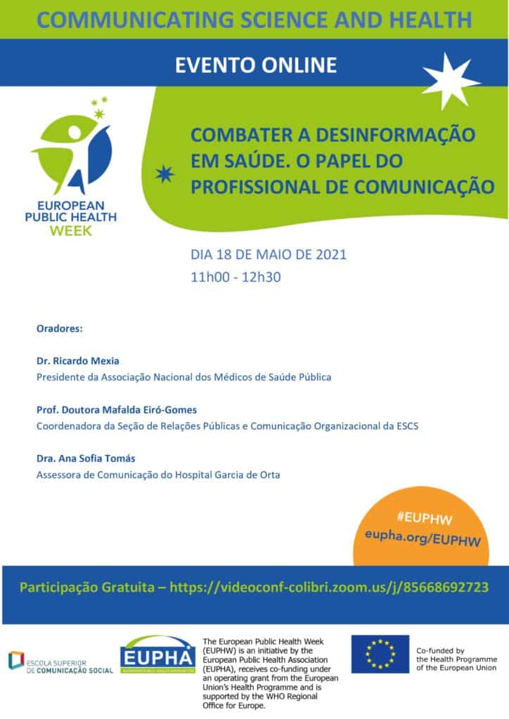 A iniciativa, que assinala as comemorações da Semana Europeia da Saúde Pública, pretende promover a discussão sobre o papel do profissional de comunicação no combate à crescente desinformação no setor da saúde, assim como refletir sobre os desafios de comunicação introduzidos pela pandemia Covid-19.