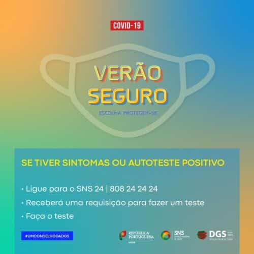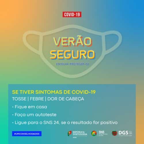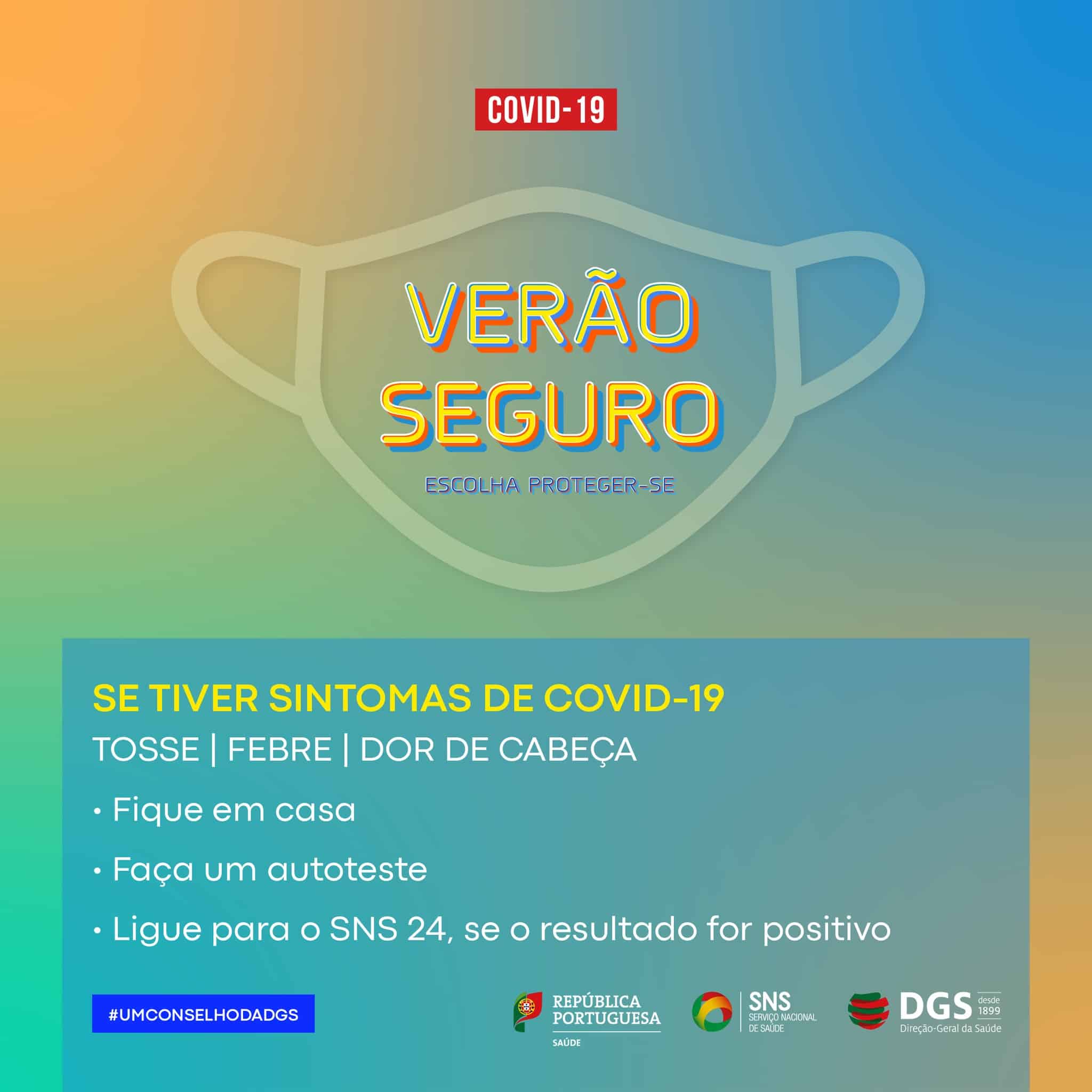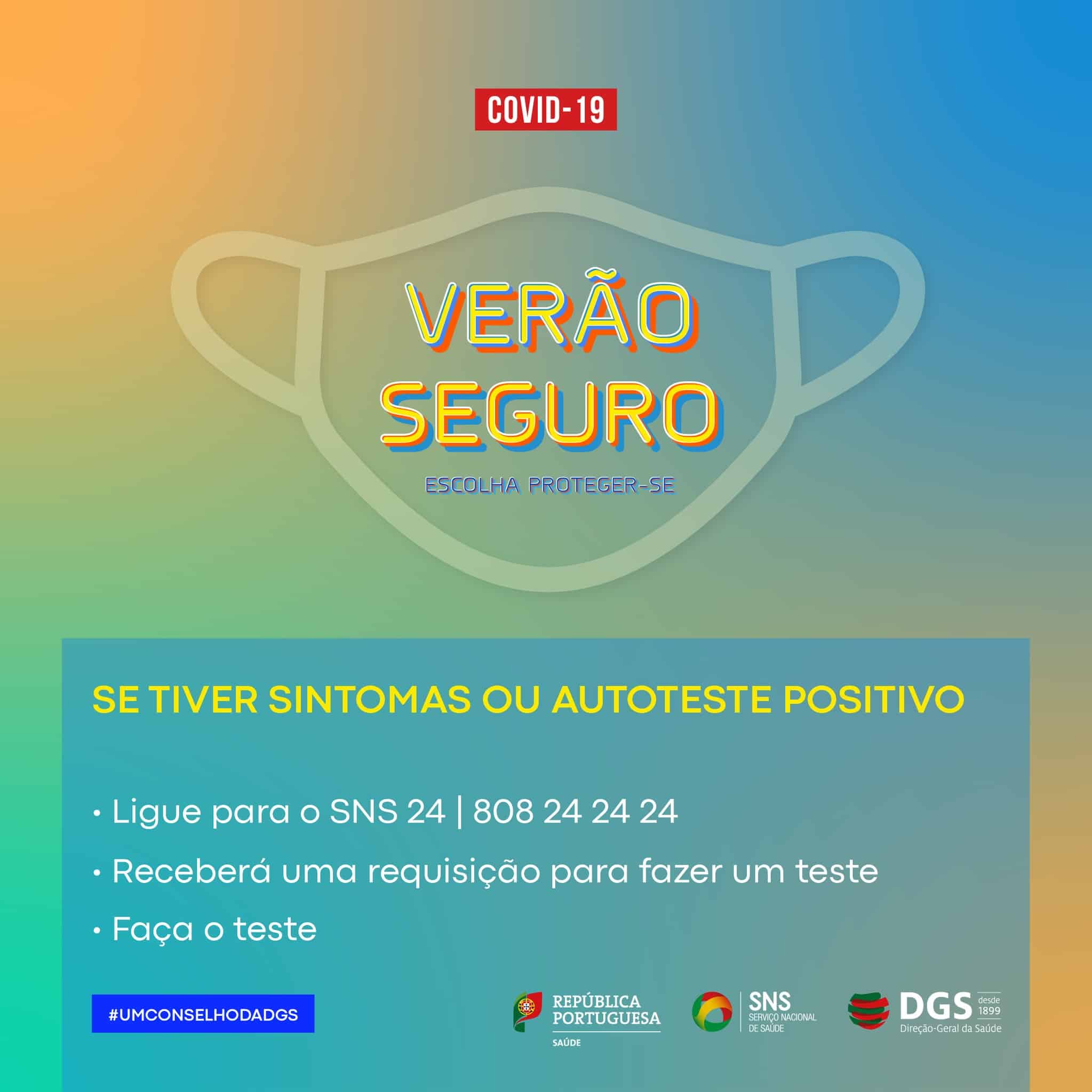 Caso os cidadãos apresentem sintomas para a covid-19 (nomeadamente tosse, febre e dores de cabeça), a DGS reforça que devem ficar em casa, realizar um autoteste e ligar para a linha SNS 24, no caso deste apresentar um resultado positivo, seguindo-se o isolamento profilático. “Seja um agente de saúde pública”, reforça a entidade.