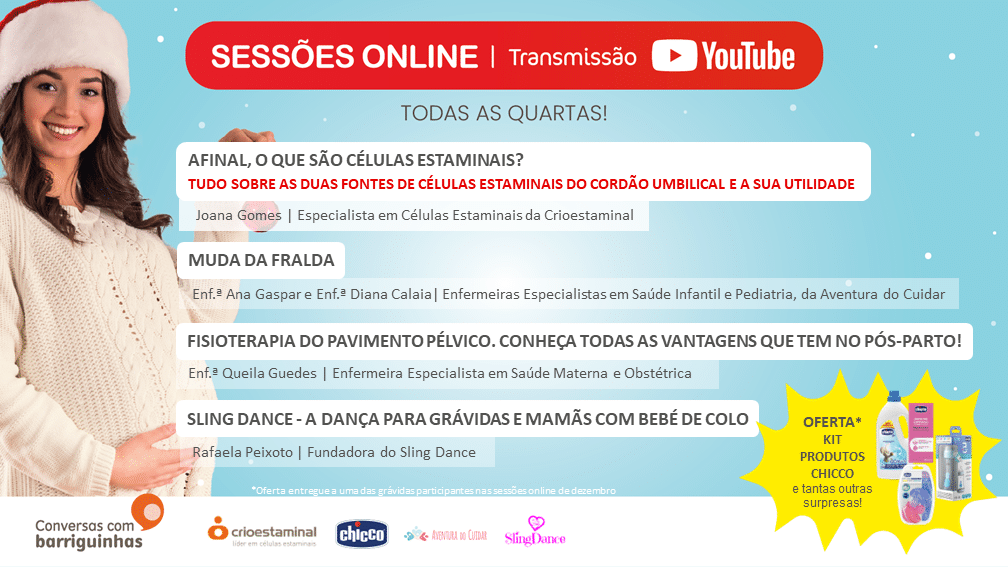 Para evitar situações de stress e aumentar a comodidade neste fim de ano, as Conversas com Barriguinhas organizam duas sessões sobre os cuidados que as grávidas devem ter, nos dias 13 e 20 de dezembro, às 18h00, que podem ser assistidas a partir do conforto e segurança das suas casas.