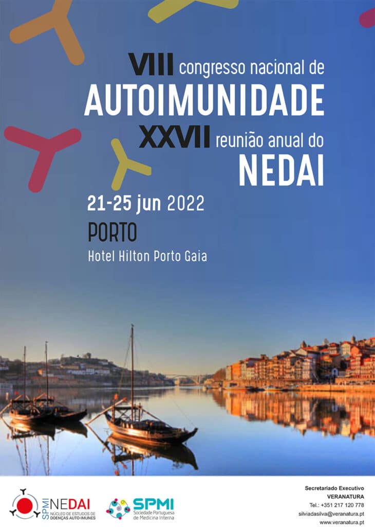 O Núcleo de Estudos de Doenças Autoimunes (NEDAI) da Sociedade Portuguesa de Medicina Interna (SPMI) realiza o VIII Congresso Nacional de Doenças Autoimunes | XXVII Reunião Anual do NEDAI, nos dias 21 a 25 de junho, no Porto.
