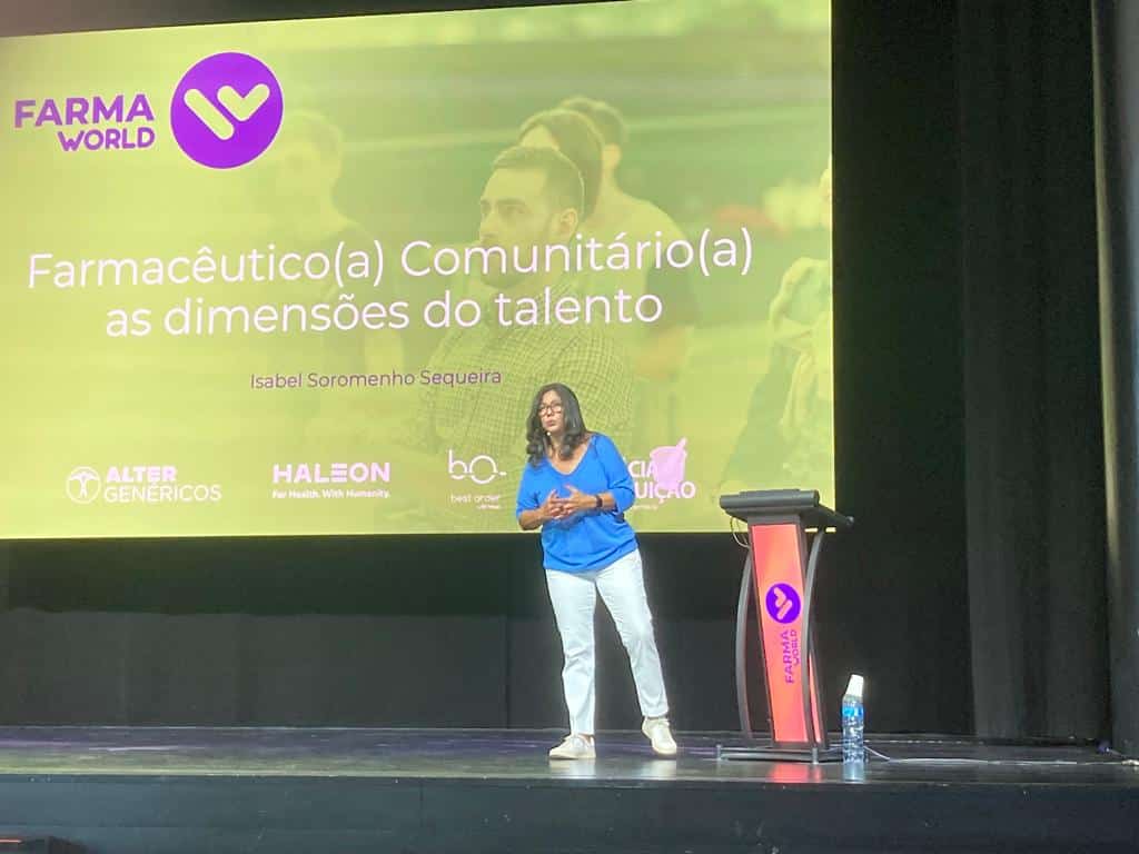 De seguida, subiu ao palco Isabel Soromenho Sequeira, a convite da Haleon, como tema “Farmacêutico(a) Comunitário(a): A Dimensão do Talento”. A professora e especialista em gestão e marketing nunca teve pejo em falar de dinheiro e vendas, dizendo logo de início ter um “fascínio” por farmacêuticos comunitários porque: “São vendedores e eu adora vendas e as missões dos vendedores de encontrarem soluções que ajudem o outro. Sem pejo, são vendedores de balcão, mas muito especiais”.