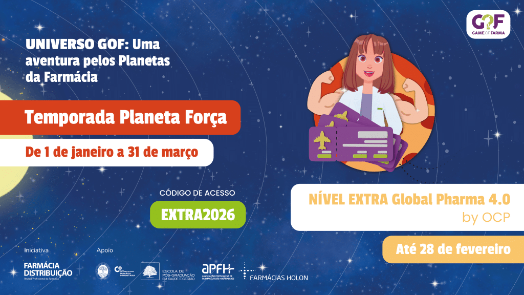 A grande novidade desta temporada é o Nível Extra Global Pharma4 by OCP que estará ativo de 05 de janeiro a 28 de fevereiro de 2026. Pode ganhar uma vaga no Global Pharma4, uma formação da responsabilidade de Daniel Guedelha, Founder e CEO da GenH, em parceria com a Católica Medical School Lisboa, com duração de 50 horas, a iniciar em 20 de março 2026.
