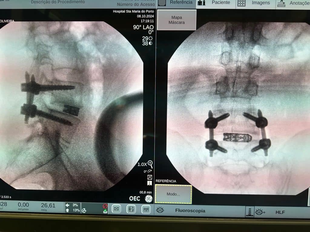 Rui Pinto, pioneiro em cirurgia de coluna fundador da Sociedade Portuguesa de Patologia de Coluna (SPPC), destaca que “este equipamento representa uma melhoria substancial, especialmente nas cirurgias minimamente invasivas. A possibilidade de visualizar a anatomia em três dimensões permite-nos ter uma visão precisa das estruturas ósseas e colocar implantes com muito mais segurança. Na prática, podemos evitar erros que, no passado, poderiam resultar na necessidade de reintervenções. Com o equipamento, estamos a operar com uma margem de erro significativamente menor, quase inexistente.”