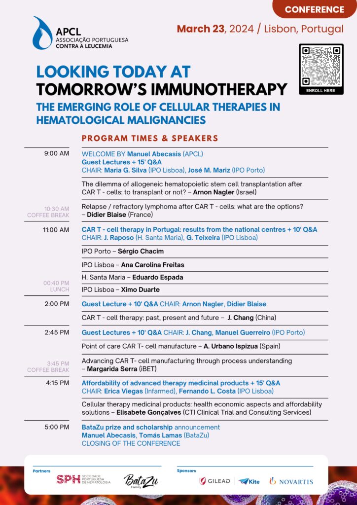 Manuel Abecassis, presidente da APCL, explica que “A imunoterapia, na sua vertente celular, é uma das armas mais eficazes no tratamento do cancro, com especial destaque para as neoplasias hematológicas. O tratamento com células CAR-T tem apresentado resultados consolidados, demonstrando o seu potencial curativo.” Relativamente à importância do evento, o presidente da Associação, refere que “Ao dinamizarmos um evento desta natureza, que junta especialistas de várias partes do mundo, estamos não apenas a informar, mas a capacitar aqueles que lidam com a doença. Cada nova descoberta, cada debate, são um passo em direção a um futuro onde o acesso a terapias inovadoras será uma realidade para todos os que enfrentam a batalha contra as doenças hemato-oncológicas”.