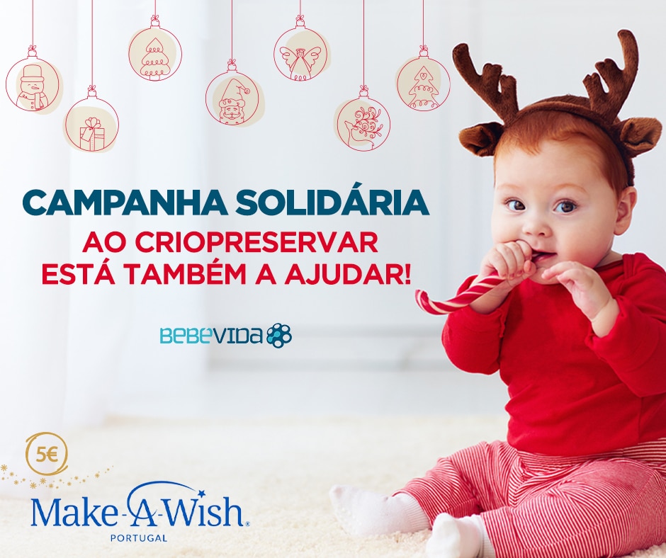 A Make-A-Wish e a BebéVida juntam-se pela terceira vez em 2020 para mais uma iniciativa solidária durante todo o mês de dezembro. Entre os dias 1 e 31 de dezembro, por cada adesão dos futuros pais à criopreservação no laboratório da BebéVida, serão doados 5€ à Make-A-Wish Portugal, com o objetivo de tornar este Natal mais generoso e feliz.