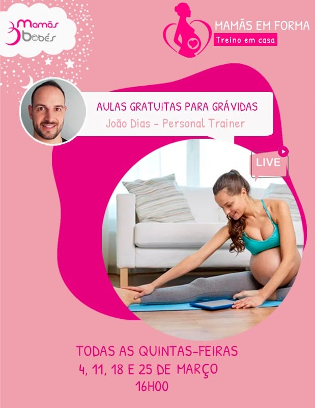 João Dias, Personal Trainer certificado e especializado em exercício físico para grávidas e pós-parto, continuará a conduzir todas as sessões da “Mamãs em Forma”. Esta renovação, por mais um mês, tem como objetivo motivar as futuras mães à prática de exercício físico, prevenindo a diabetes gestacional e o aparecimento de varizes. É fundamental relembrar a importância de uma postura correta durante a gravidez previne o aparecimento de lombalgias e facilita o trabalho de parto devido ao exercício a nível do soalho pélvico.