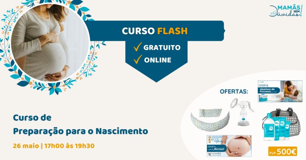 No dia 26 de maio, entre as 17h00 e as 19h30, a Academia Mamãs Sem Dúvidas vai realizar, pela primeira vez, um curso intensivo de preparação para o nascimento do bebé destinado a todas as grávidas. O curso é gratuito e exclusivamente online. As inscrições podem ser feitas aqui: https://mamassemduvidas.pt/passatempo/.