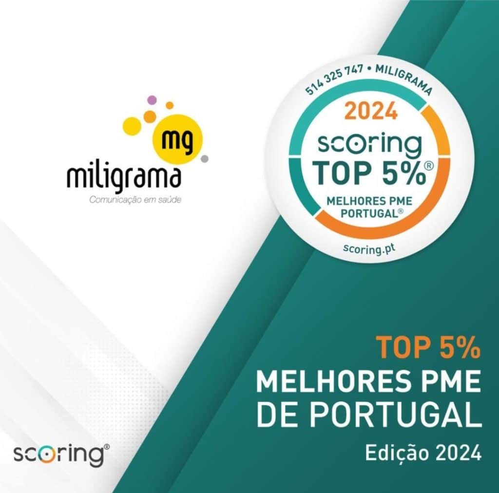 A Miligrama, agência de comunicação especializada em saúde, acaba de ser distinguida com a certificação “Top 5% Melhores PME de Portugal”, edição 2024, pela SCORING. Este reconhecimento posiciona a empresa entre as pequenas e médias empresas portuguesas com melhor desempenho económico e solidez financeira.