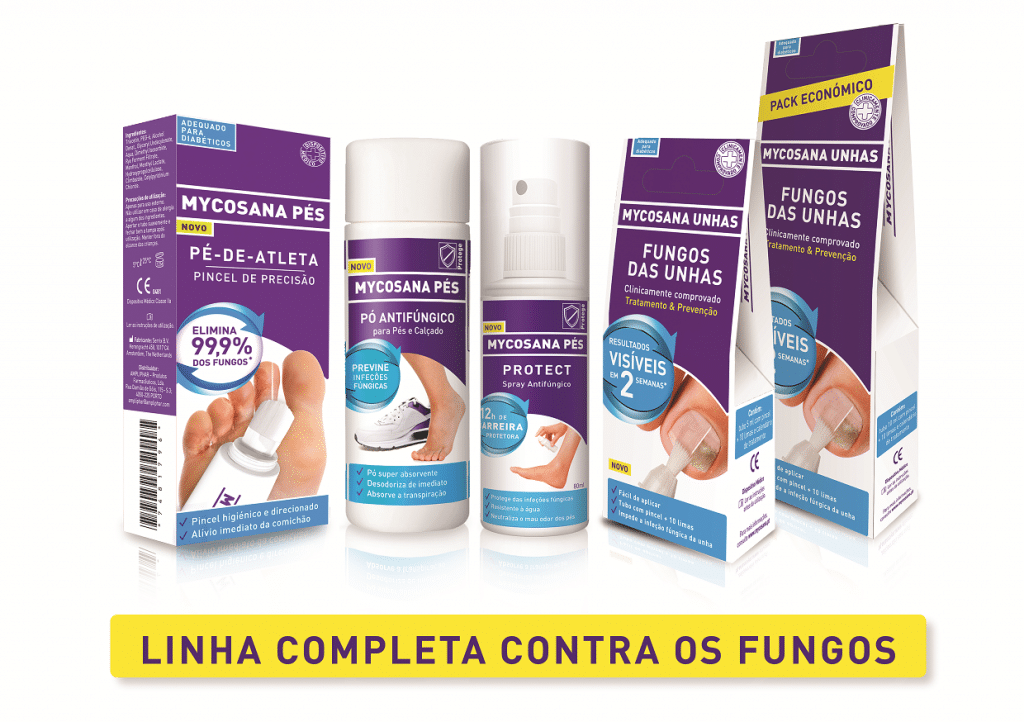 A linha MYCOSANA é composta por: MYCOSANA UNHAS (5 e 10 ml), um kit de tratamento completo para os fungos das unhas, com resultados visíveis em duas semanas; MYCOSANA PÉ-DE-ATLETA, específico para proteção e tratamento, que elimina 99,9% dos fungos responsáveis pelo pé-de-atleta e alivia de imediato a comichão e o ardor; MYCOSANA Pó Antifúngico, um pó absorvente antifúngico, higienizante e desodorizante para pés e calçado, e o MYCOSANA PROTECT Spray Antifúngico.