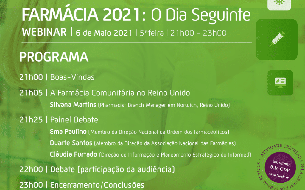 A revista FARMÁCIA DISTRIBUIÇÃO organiza, hoje, pelas 21:00 horas, mais uma edição FARMA SESSIONS. Com o tema “FARMÁCIA 2021: O Dia Seguinte” esta sessão irá trazer a visão de quem exerce no estrangeiro, bem como discutir o futuro das farmácias comunitárias no ecossistema da Saúde, com as entidades que poderão alterar o panorama nacional.