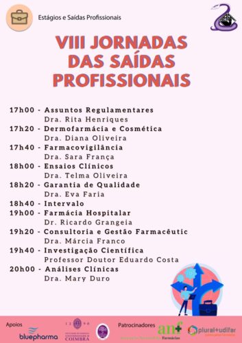 O Núcleo de Estudantes de Farmácia da Associação Académica de Coimbra (NEF/AAC) está a promover, esta segunda-feira, dia 2 de maio, as VIII Jornadas das Saídas Profissionais.
