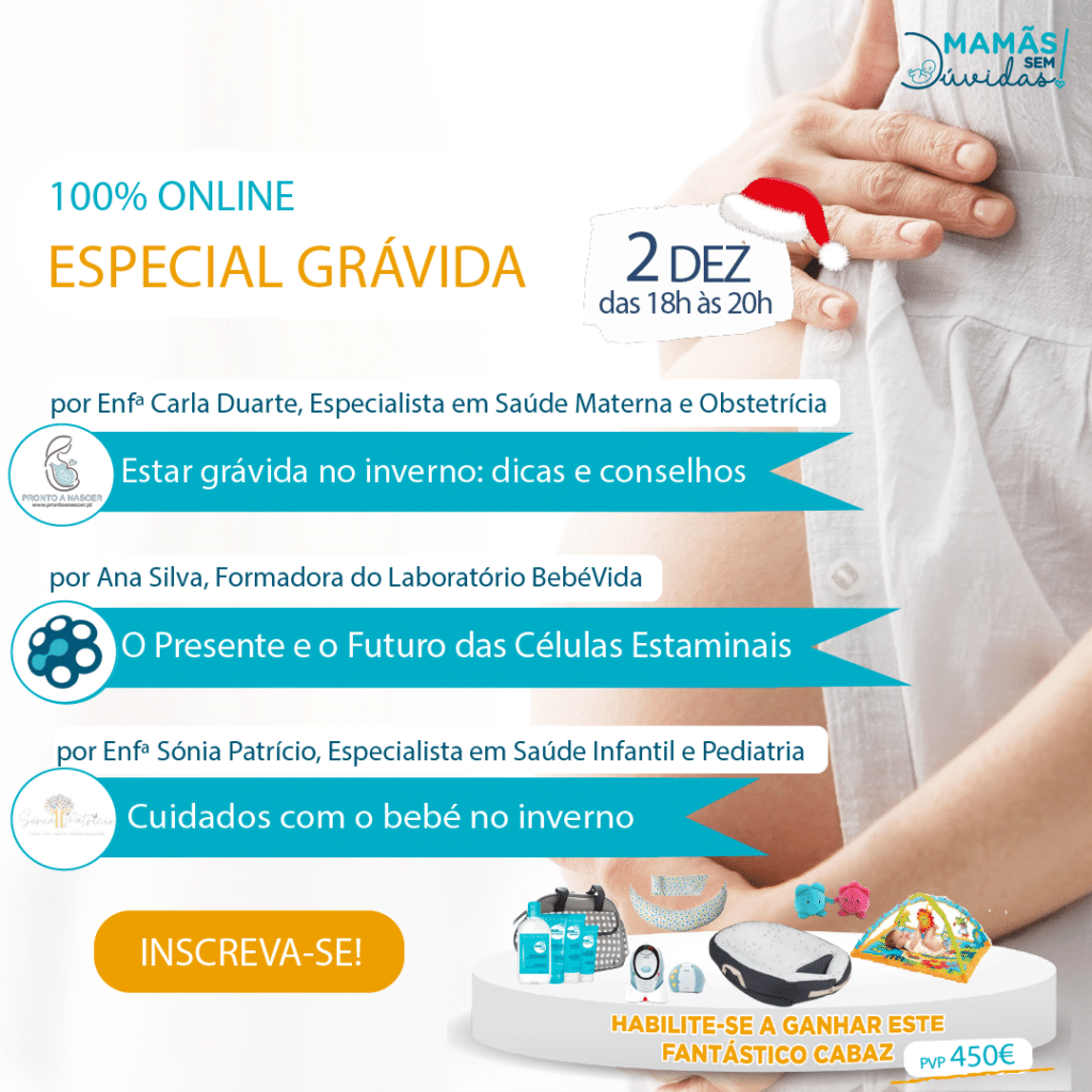A menos de um mês para a chegada oficial do Inverno, a Mamãs Sem Dúvidas realiza no dia 2 de dezembro, entre as 18h00 e as 20h00, mais uma edição do “Especial Grávida” que vai ser especialmente dedicado à Estação que se aproxima. A sessão vai decorrer em formato virtual e visa preparar as futuras mamãs para aquela altura do ano caraterizada por temperaturas mais rigorosas.