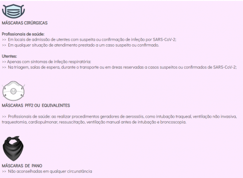 Para além disso, ficam também indicações da DGS e da OMS (respetivamente) de como proceder para evitar o contágio de covid-19.