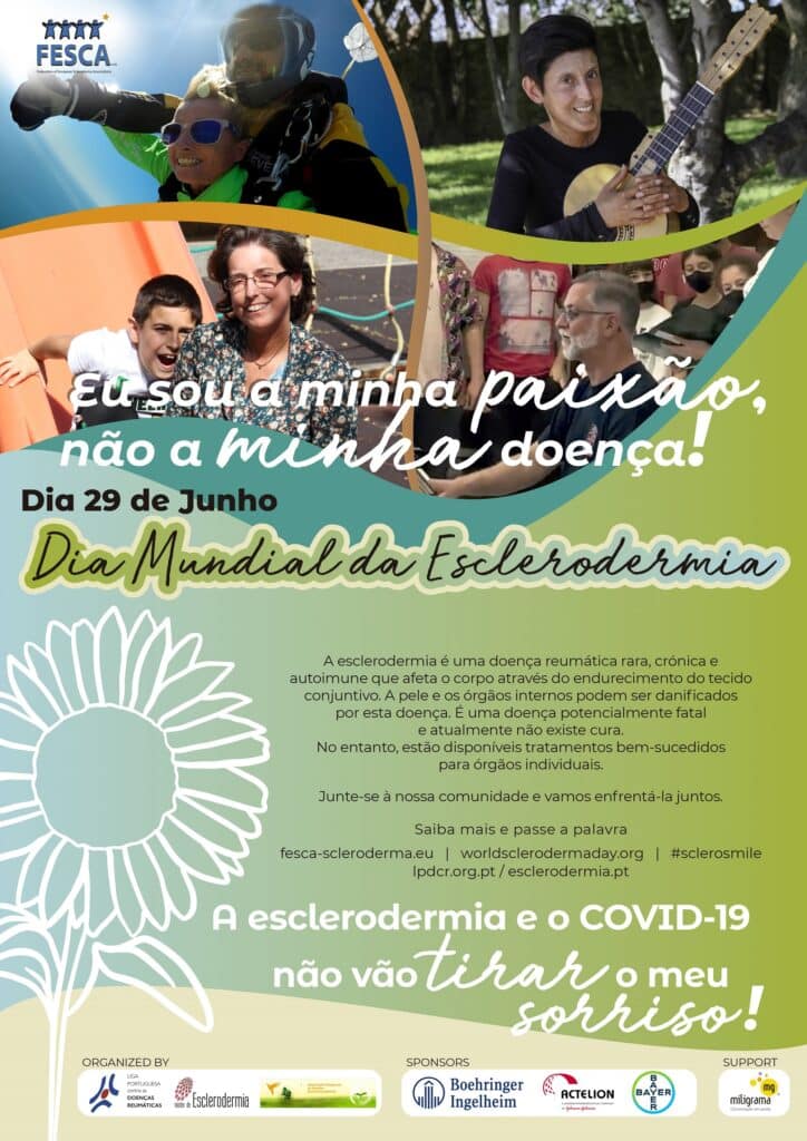 O slogan deste ano será, “EU SOU A MINHA PAIXÃO NÃO A MINHA DOENÇA! A Esclerodermia e o COVID-19 não vão tirar o meu sorriso”! Embora seja vital que aumentemos o conhecimento sobre a doença, é também importante que tratemos e compreendamos a pessoa e não apenas a doença. O objetivo é valorizar ao máximo o que cada paciente faz na sua vida, mostrando a sua paixão, mostrando o que o faz sorrir, lutar e superar a doença.
