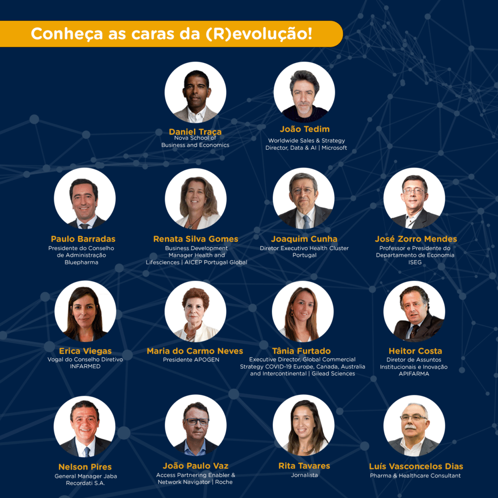 Junta-se aos já confirmados Daniel Traça (Nova School of Business and Economics), João Tedim (Worldwide Sales & Strategy Director, Data & AI | Microsoft), Paulo Barradas (Presidente da Bluepharma), Renata Silva Gomes (Gestora da Fileira da Saúde AICEP Portugal), Joaquim Cunha (Diretor Executivo Health Cluster Portugal), Rita Tavares (jornalista), Nelson Pires (General Manager Jaba Recordati S.A.), Luís Vasconcelos Dias, (Pharma & Healthcare Consultant), Erica Viegas (Vogal do Conselho Diretivo do INFARMED), Maria do Carmo Neves (Presidente APOGEN), Tânia Furtado (Executive Director, Global Commercial Strategy COVID-19 Europe, Canada, Australia and Intercontinental | Gilead Sciences), Heitor Costa (Diretor de Assuntos Institucionais e Inovação APIFARMA) e João Paulo Vaz (Access Partnering Enabler & Network Navigator | Roche Farmacêutica).