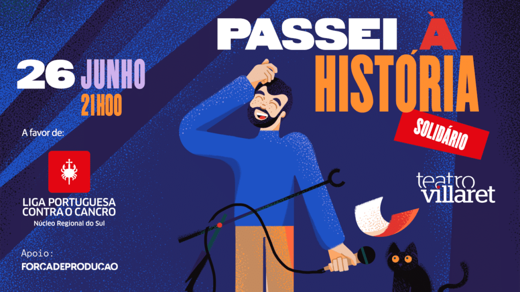 O espetáculo “Passei à História”, da autoria de Rui Malvarez, vai regressar ao palco do Teatro Villaret no próximo dia 26 de junho, pelas 21h, para uma sessão solidária em que toda a receita de bilheteira será doada à Liga Portuguesa Contra o Cancro.