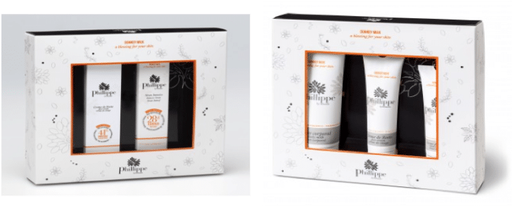 Os produtos inseridos nos coffrets Phillippe by Almada têm como base o leite de burra em pó, com ceras naturais, vitamina E, óleo de jojoba, manteiga de karité e vitamina E, “os ingredientes eficazes para o tratamento antirrugas e reafirmante, que proporciona suavidade e uma hidratação superior à pele”, lê-se em comunicado.