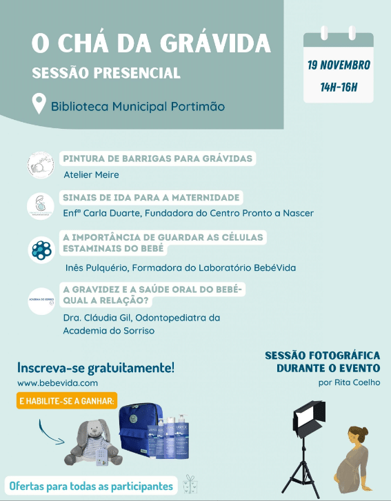 Já todas ouvimos falar do chá do bebé, mas e do chá da grávida? No dia 19 de novembro, entre as 14h00 e as 16h00, a BebéVida, laboratório português de criopreservação de tecidos e células estaminais, vai realizar um evento dedicado a todas as futuras mamãs na Biblioteca Municipal de Portimão. Desde workshops a momentos lúdicos, a iniciativa vai juntar grávidas para uma tarde informativa e descontraída. A participação é gratuita, mas é necessária inscrição prévia em: https://bebevida.com/event/o-cha-da-gravida/.