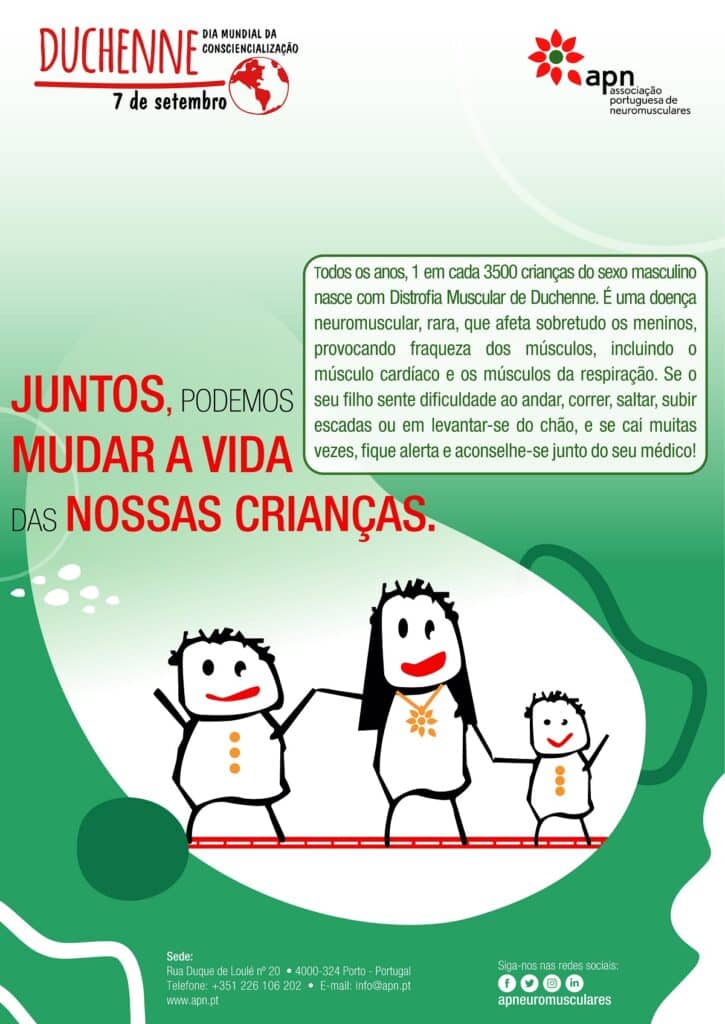 O dia 7 de setembro foi instituído como o Dia Mundial para a Consciencialização da Distrofia Muscular de Duchenne. Em Portugal, e em todos os lugares do mundo, a data assinala-se com eventos variados, conferências científicas e outros acontecimentos que pretendem chamar à atenção para a sua identificação, de forma cada vez mais precoce.