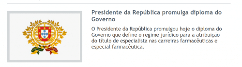 De acordo com o portal da Presidência da República Portuguesa, o Presidente da República promulgou o diploma do Governo “que define o regime jurídico para a atribuição do título de especialista nas carreiras farmacêuticas e especial farmacêutica”.