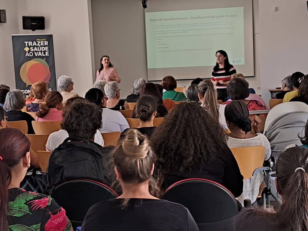 Dulce Fonseca, diretora técnica da Farmácia Jordão Pedrosa, Clara Saramago, da UCC “Saúde na Rua”, foram as palestrantes na sessão, onde se debateram as seguintes temáticas: A pele como orgão; Tipos e estados de pele; Hábitos e genética; Diferenças entre a pele do rosto e a do corpo; Envelhecimento geral da pele: fatores externos e internos; Como cuidar da Pele; Patologias dermatológicas: escabiose, pediculose e infeções fúngicas.