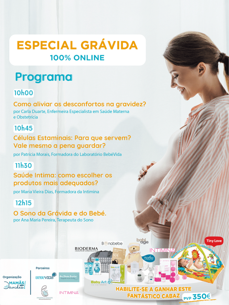 • “Saúde Íntima: como escolher os produtos mais adequados?”, com o contributo de Maria Vieira Dias, formadora da Intimina, que explicará às futuras mamãs quais as soluções disponíveis e mais apropriadas.