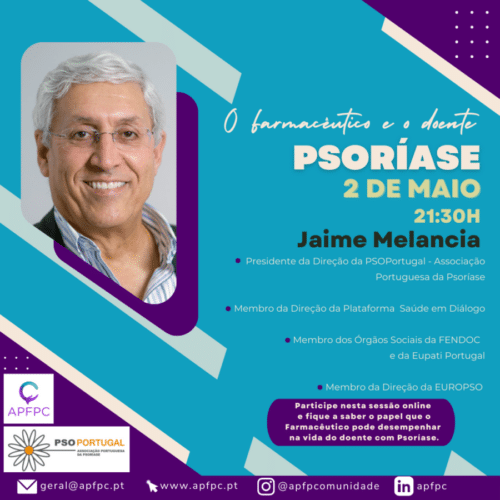 A sessão contará com a presença de Jaime Melancia, presidente da Direção da PSOPortugal – Associação Portuguesa da Psoríase. As inscrições encontram-se abertas aqui.