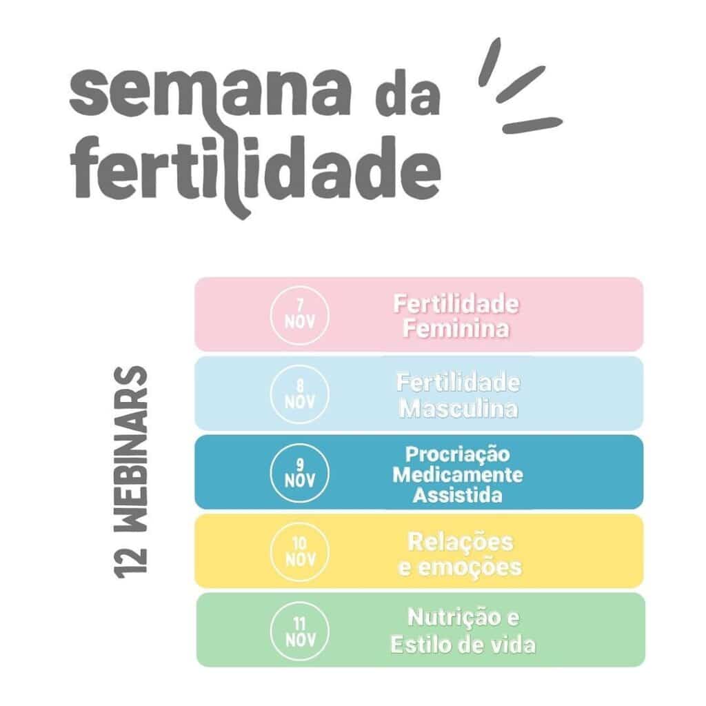 Ao longo da semana, a agenda será repleta de webinars online, que contarão com a participação de especialistas nos diversos temas relacionados com a fertilidade. Cada dia, será focado num dos cinco temas: fertilidade feminina, fertilidade masculina, tratamentos de procriação medicamente assistida, emoções e relações, nutrição e estilo de vida.