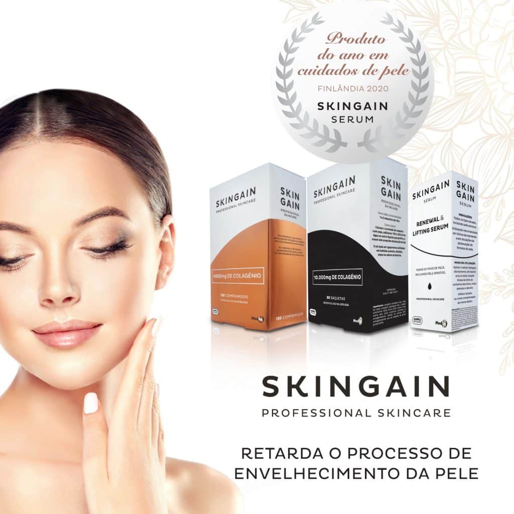 A escolha de SKINGAIN Sérum Renovador & Lifting foi efetuada por profissionais de espaços de saúde na Finlândia e é um reconhecimento que vem reforçar a qualidade e inovação associadas à fórmula deste produto que completa a gama SKINGAIN – Professional Skincare, indicada para retardar o processo de envelhecimento da pele.